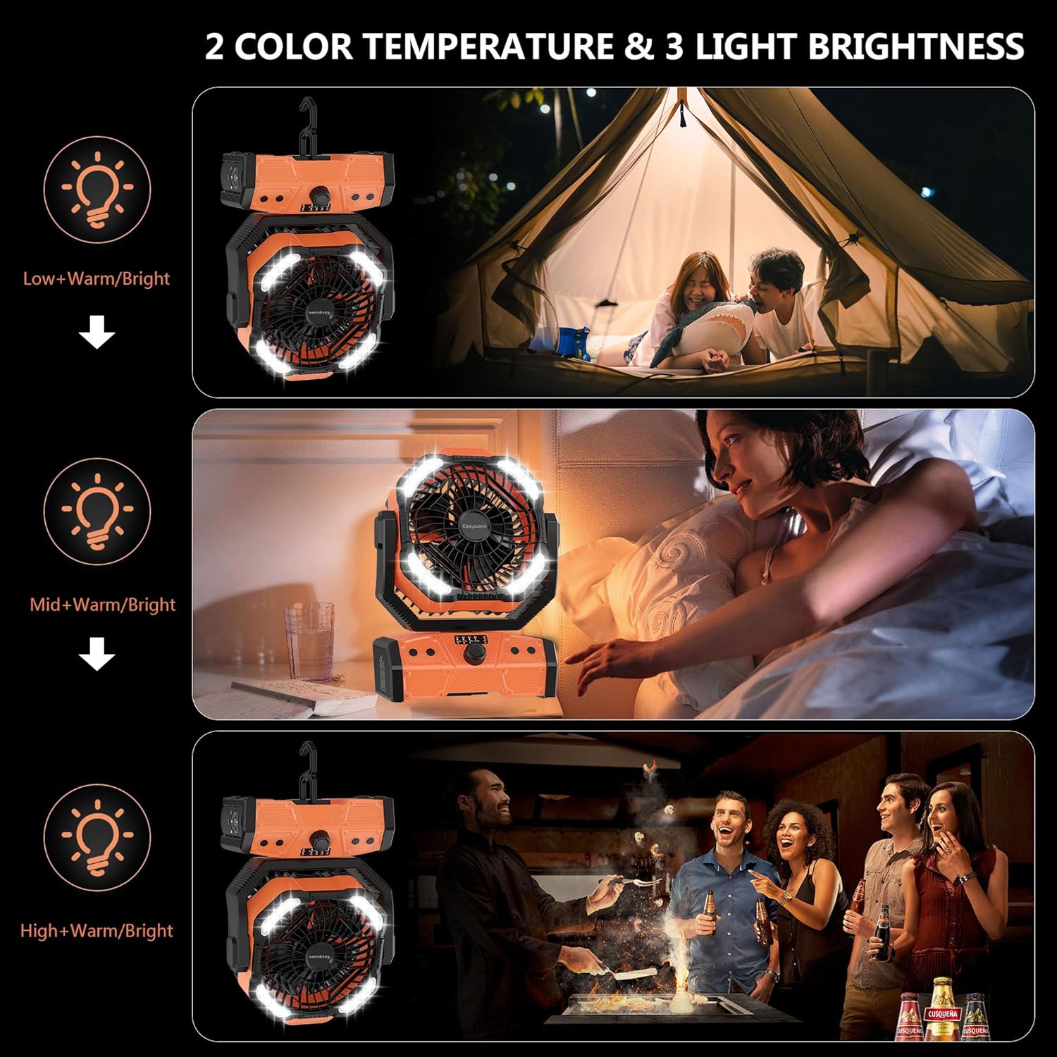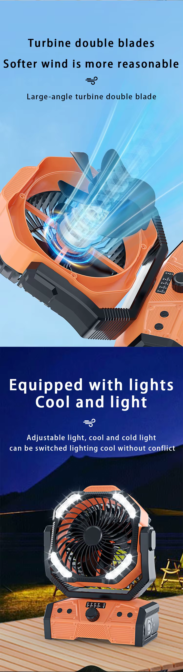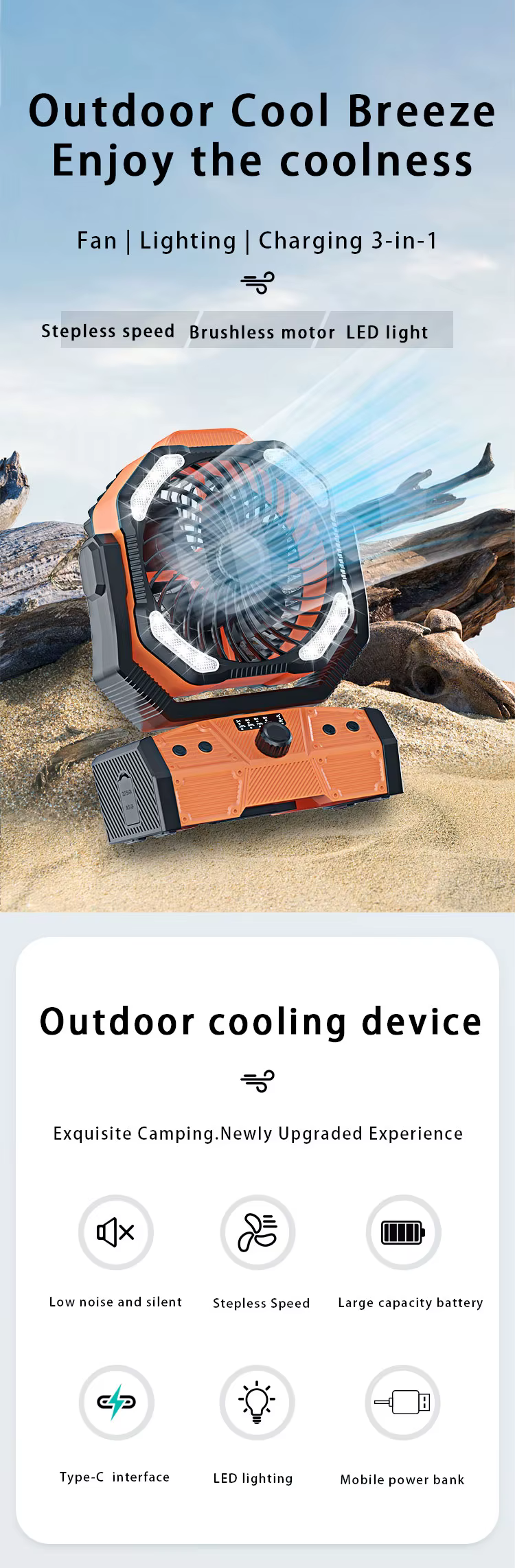 This camping fan with light is the perfect balance of comfort, performance, and smart design, engineered to elevate your outdoor adventures while remaining reliable for indoor emergencies. Wherever you are, enjoy cooling airflow, gentle lighting, and quiet operation you can count on.
